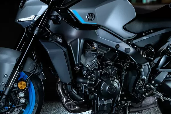 The lightweight, liquid-cooled, three-cylinder CP3 engine delivers maximum torque at low rpm for an adrenaline-pumping ride. Optimised fuel injectors and refined gear ratios ensure smooth performance, while an updated assist and slipper clutch enhances control. Yamaha’s six-axis IMU, inherited from the R1, governs advanced rider aids like traction control, slide control, and front-wheel lift control. The Back Slip Regulator (BSR) stabilises braking, while Yamaha Ride Control (YRC) allows riders to customise their experience with pre-set or personalised modes.