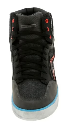 Exclusive compound rubber sole features structured shank reinforcement for added support to the arch area